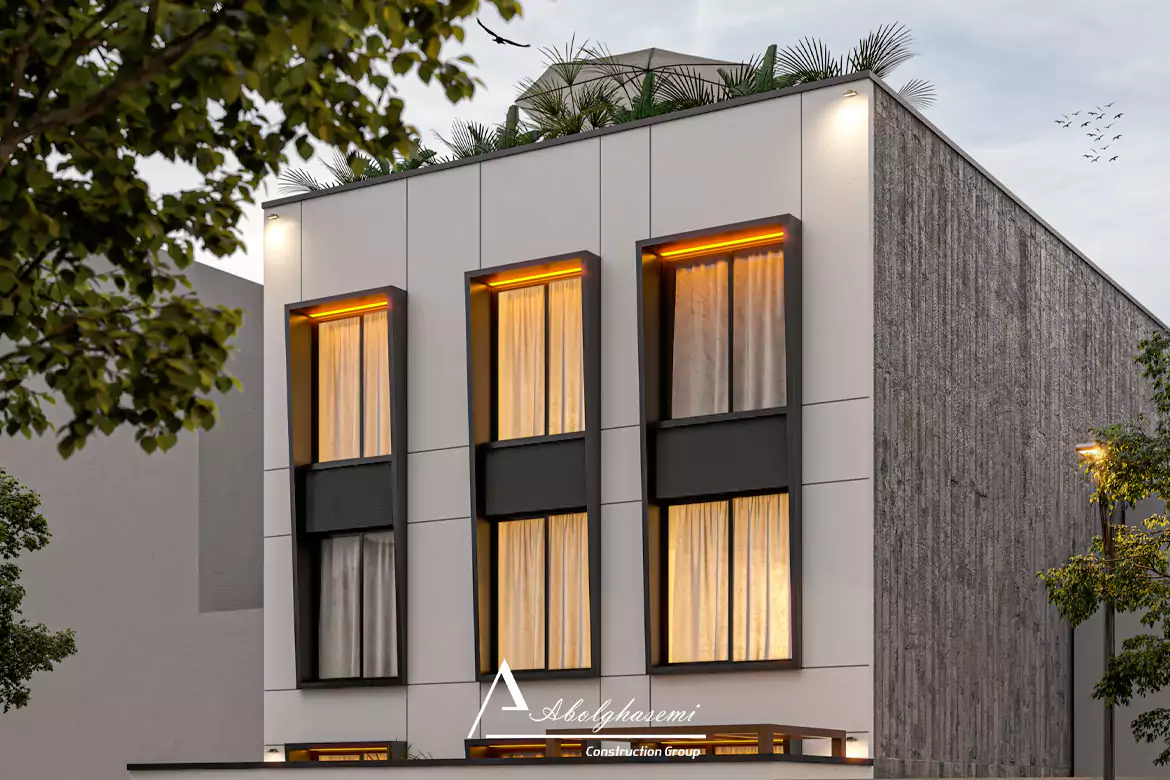 نمای ساختمان مدرن پروژه خانم عظیمی