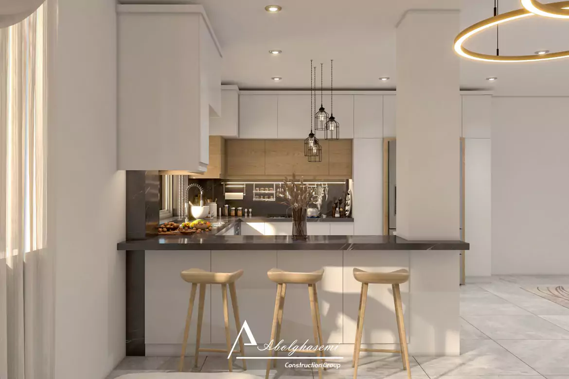 طراحی داخلی آشپزخانه و سرویس بهداشتی پروژه 13