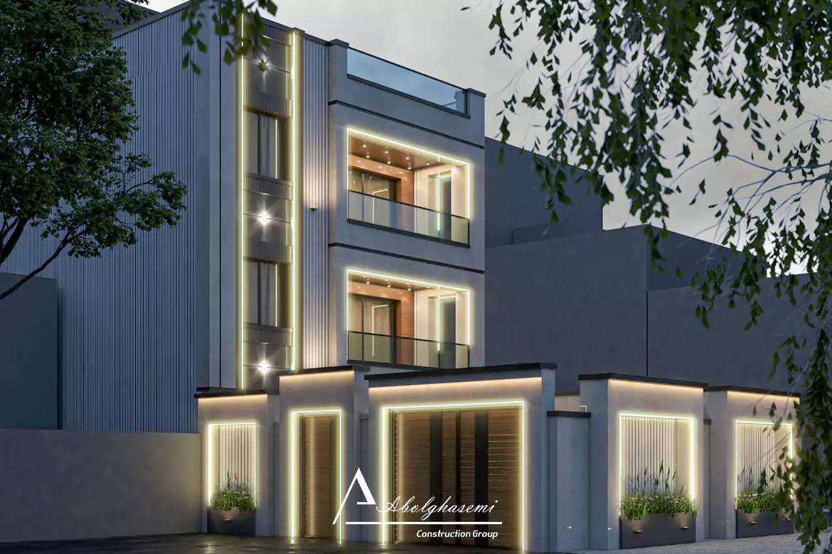 نمای شب مدرن ساختمان آقای محمدی