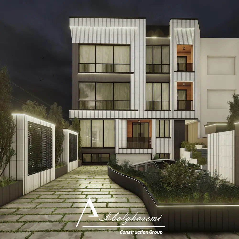 نمای شب پروژه آپارتمان مسکونی آقای حاتمی